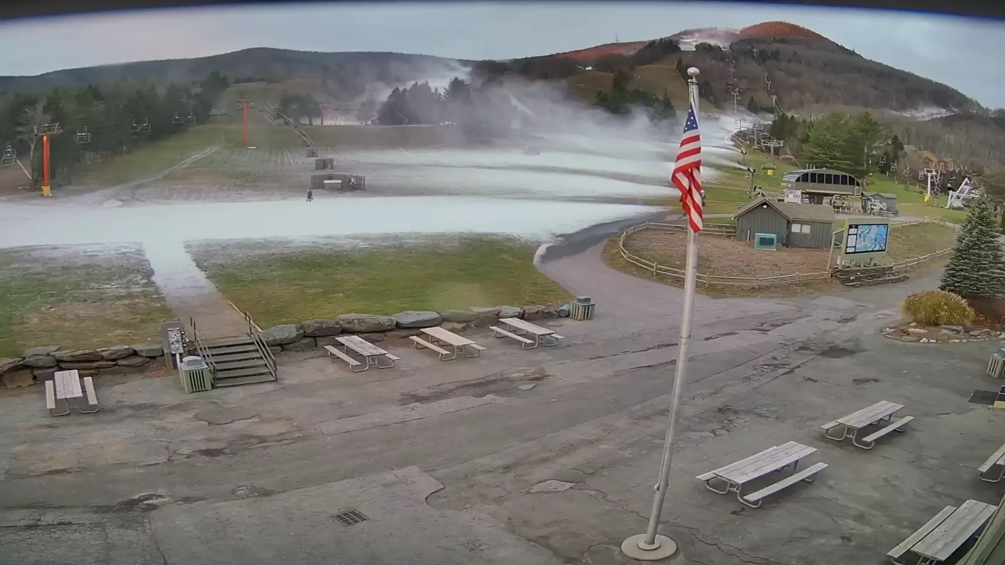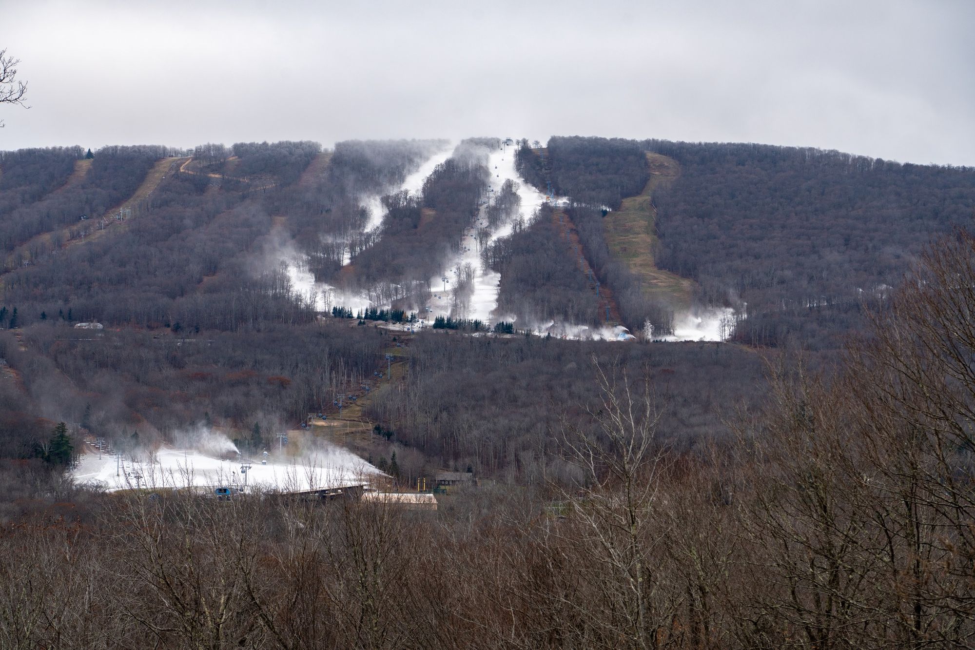 ORDA's three ski areas in New York have implemented some massive improvements of their snowmaking infrastructure in the last few years and it's really starting to show. None of the three jumped on some of the early windows at the beginning of the month, but starting on last Tuesday night Whiteface lit their system up on the summit with Paron's Run, then Gore came online starting Friday night and are working on Ruby Run, Showcase, Tahawus, and The Arena, and then Saturday night Belleayre finally got some temps and lit up Deer Run, Peekamoose, The Crossing, and their Discovery Base area. It used to be that these three could only make snow on one or maybe two runs at a time so this is clear evidence of all of the investments and hard work they have done launching the state-owned and operated ski areas into the upper tier of snowmaking capabilities in their respective climates.