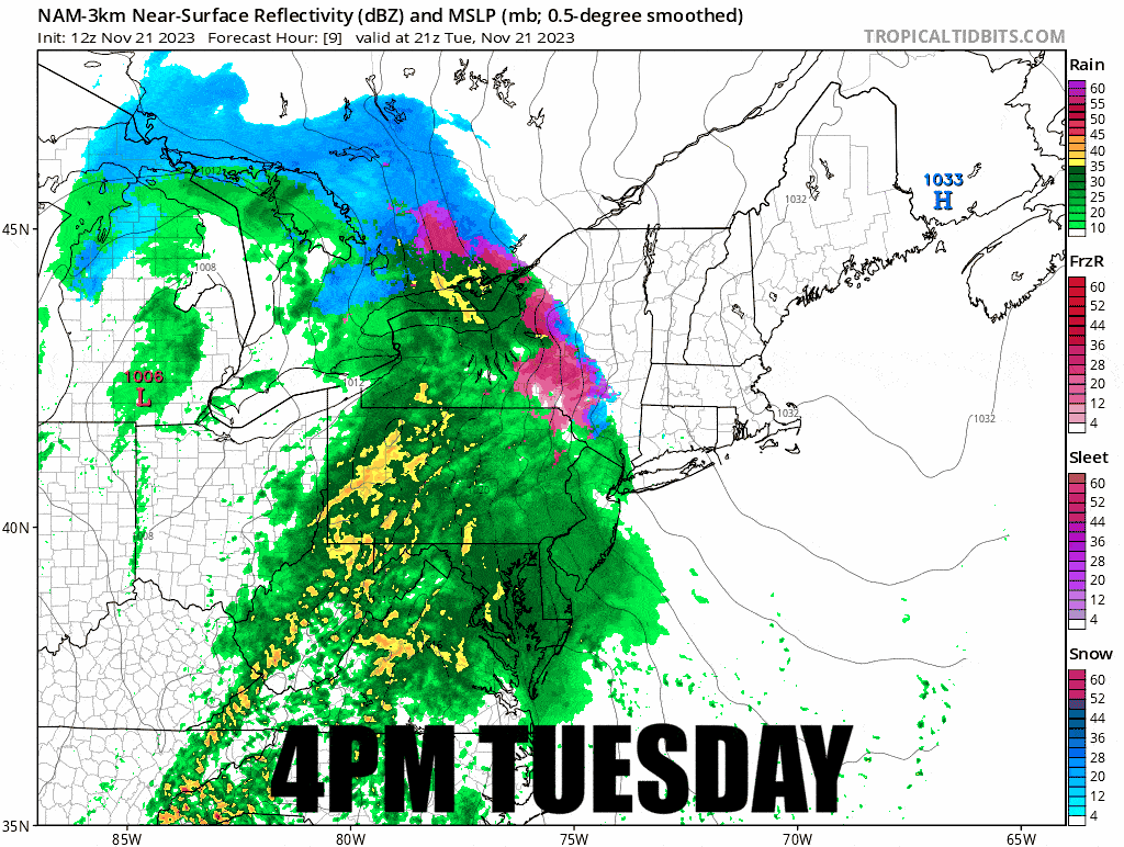 Generally these updates get shorter as we get closer to the storm because there is less guessing. Track and intensity are typically dialed in and only the amount of snow, ice, and rain along with the effects of wind are what we are concerned about now. This storm however is of wider interest for travel, so let's show the 12z NAM3k for everyone that I timestamped in order to make it easy to follow (it's actually a pain to do this, but very useful).