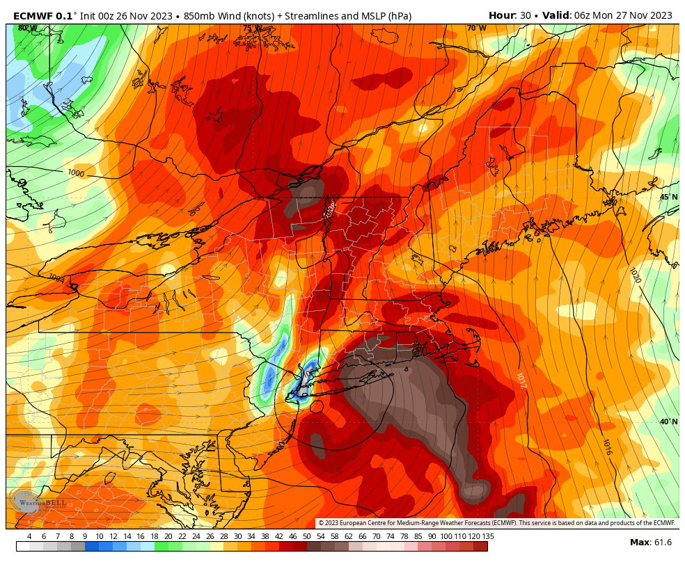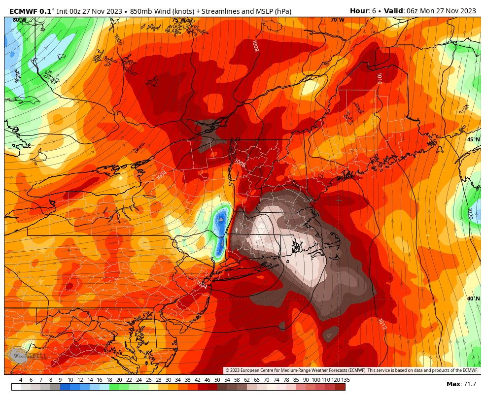 Radar last night showed what looked like a mesolow (small low circulation) forming in the lower Hudson Valley of NY. This wasn't modeled by any of the models available to me at 5PM yesterday.