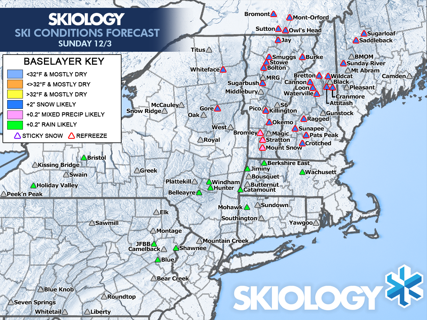 And here's our Ski Conditions Forecast for Sunday as it stands right now.