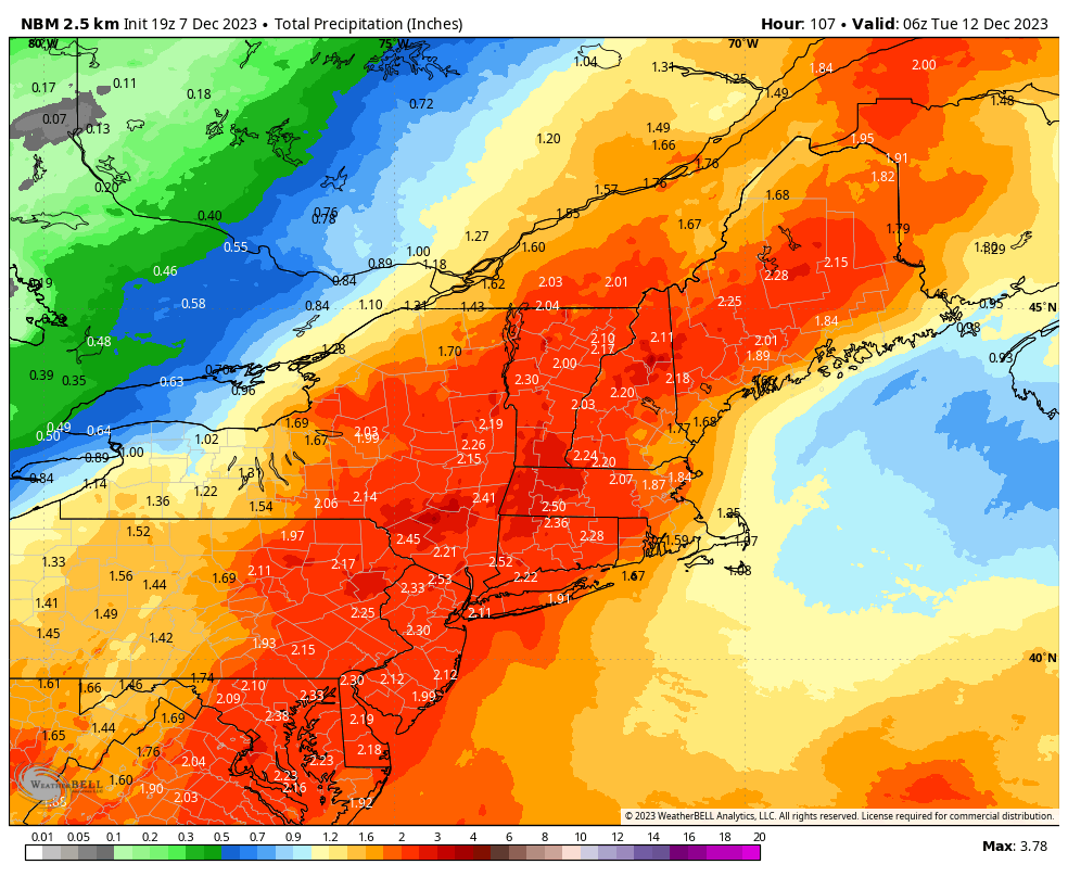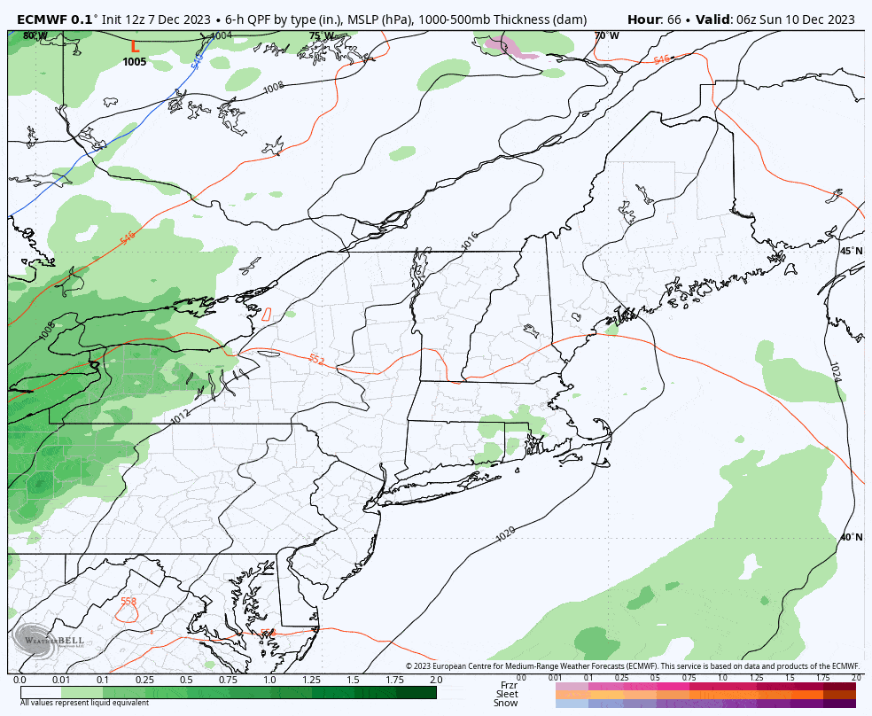 I don't see much opportunity for this to notable benefit areas not mentioned. New Hampshire and Maine ski areas likely get virtually all rain out of this. How much rain? Well this map in shows all of the water that will fall, and you can take off about an inch from under where it snows heavily.