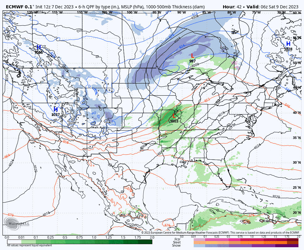 Models have mostly coalesced presently on essentially what you see in this ECMWF loop above covering Saturday through Monday. This could be both worse and better depending on the strength of the larger low that spins up. The stronger the low the more the moisture will be thrown back behind the cold front for snow to fall, and the earlier that happens the further to the southwest the snow will stack up.