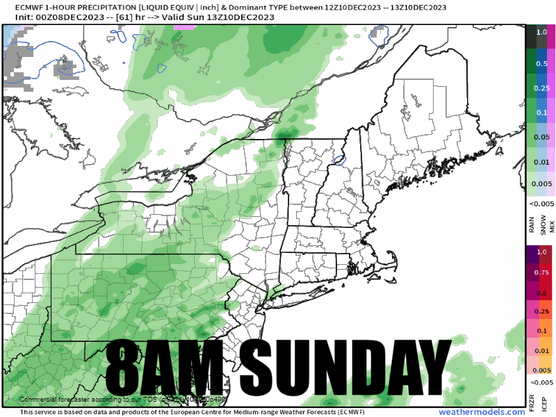 I have a loop of the 6z ECMWF also timestamped to go along with this so that you can visualize the progression of the rain. I expect a good number of ski areas in NY, NJ, PA, and maybe parts of Southern New England to not open on Sunday due to the combination of wind and rain.