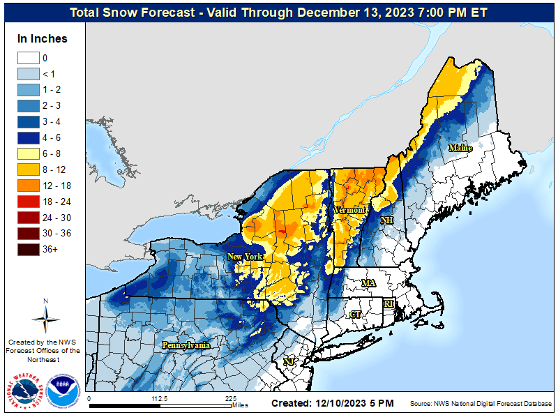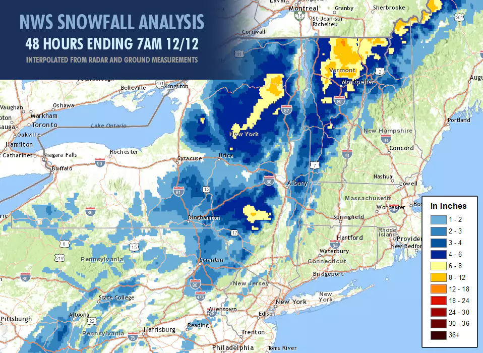 I am quite happy with my forecast through the end of the storm. Changeover storms with an elevation component are insanely difficult to forecast accurately for and on the edges where snowfall is expected to drop off you can expect the greatest uncertainty. I ended up hitting a good number of these areas accurately which is always a relief, but certainly not all of them. My more notable misses were in the Poconos where no one reported anything but I know I was too bullish by 2"-3", and I also was heavy in the Eastern Townships by a similar amount. I was a little too bullish in Southern Vermont and the Berkshires, but practically dead on elsewhere. Here are the reported snowfall totals with some notes: