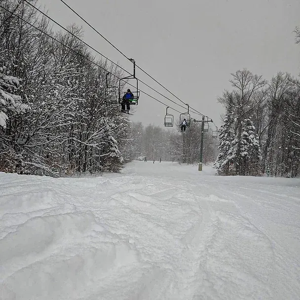 Now Titus is a very unique ski area for the Northeast, and an absolute gem. They were added to the Indy Pass two seasons ago which has helped expose more people to what they have to offer. They're located just 15 miles from the Canadian border and 35 miles away from Plattsburgh on the foothills of the Adirondacks. They are far enough off the beaten path that it is never too busy, and they are often one of the last places in the Northeast to see rain from storms with less optimal tracks and one of the first to benefit from the upslope on the back end from the St. Lawrence River Valley. Their snow is in fact among the best and most consistent in the Northeast and Titus is a great place to have in your back pocket when they stack up with snow while others ice up. On weekdays the fresh snow won't run out either and their rotating midweek schedule of running chairs will leave untouched freshies for the next day.