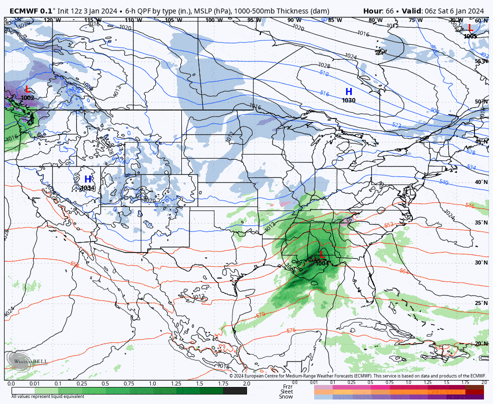 Let's take a look at the wide view of this storm for all of Saturday and Sunday using the latest run of the ECMWF which is at this time the most bullish of the three major medium-range models.