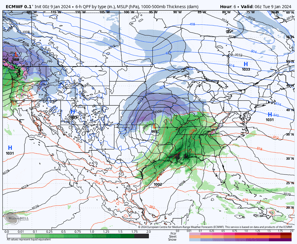 We have a storm already underway in the Alleghenies of course, and we have a second storm that will traverse the Northeast on Saturday that looks like a carbon copy of the first storm... another cutter. I'll cover that starting on Wednesday, but right now there's a lot going on in the next two days that I'm going to detail. Here's the latest ECMWF covering Tuesday through Sunday showing both storms from the broader view. Note, this coming weekend will be tricky with the next storm!
