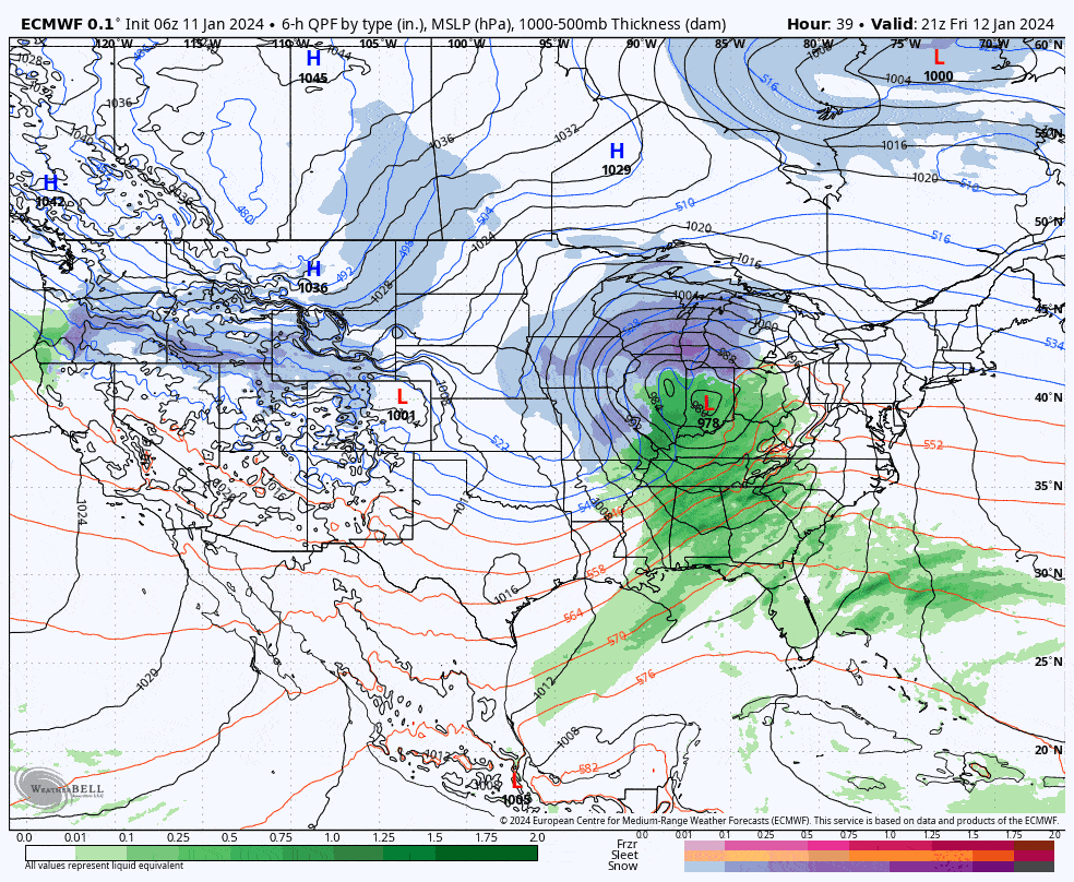 This is an important weekend and we'll have a storm impacting the entire region on Saturday with both snow and rain, maybe a little ice, and unfortunately also wind. Wind will be a notable issue for operations on Saturday in parts of the NY, VT, NH, ME, and ET (Eastern Townships of Quebec), though it will be transient as the system moves through the Northeast. Saturday will be difficult and you will want to try to plan around it appropriately. There will be back-end snow plus wind on Sunday, and some much more isolated wind threats on Monday as the lake effect driven snow tapers off. First, here's the broad view from the 6z ECMWF showing the storm from Friday at 4PM through Sunday at 4PM.