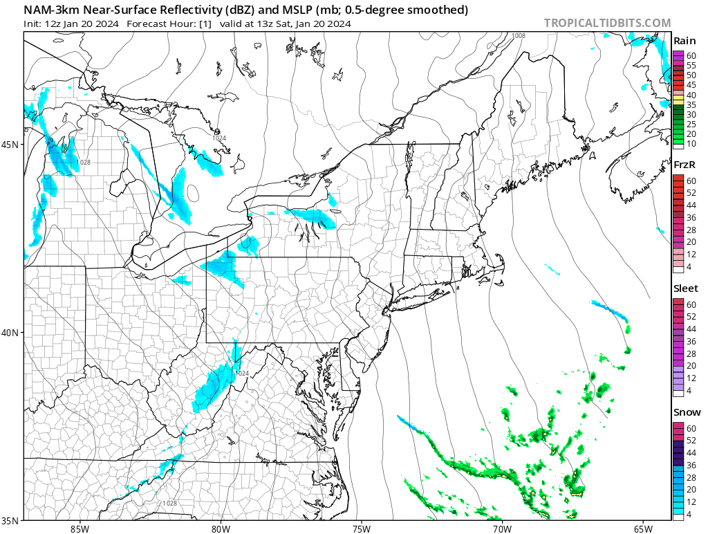 We still have some back end snow to come, but note that much of what you see in the NAM3K simulated radar loop showing 8AM today through 8AM on Sunday is very light snow, some of which will not hit the ground or at least will not produce accumulations unless it also has some upslope enhancement.