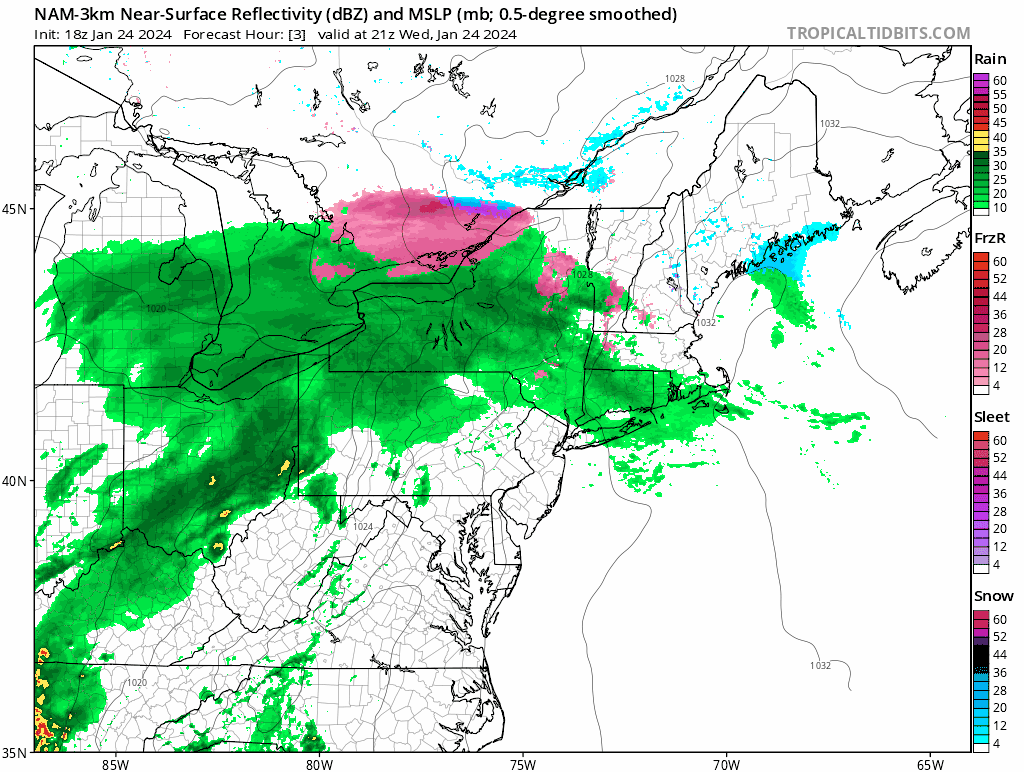We've covered the 2nd push of this storm twice already and generally the guidance is unchanged for Thursday. The simulated radar shows midnight tonight and that's a big batch of freezing rain mostly focused on Maine, and it may well cause issues on Thursday. Here's the simulated radar covering from 4PM on Wednesday through noon on Thursday to help set this up, but there's another push on Friday that will be covered below.