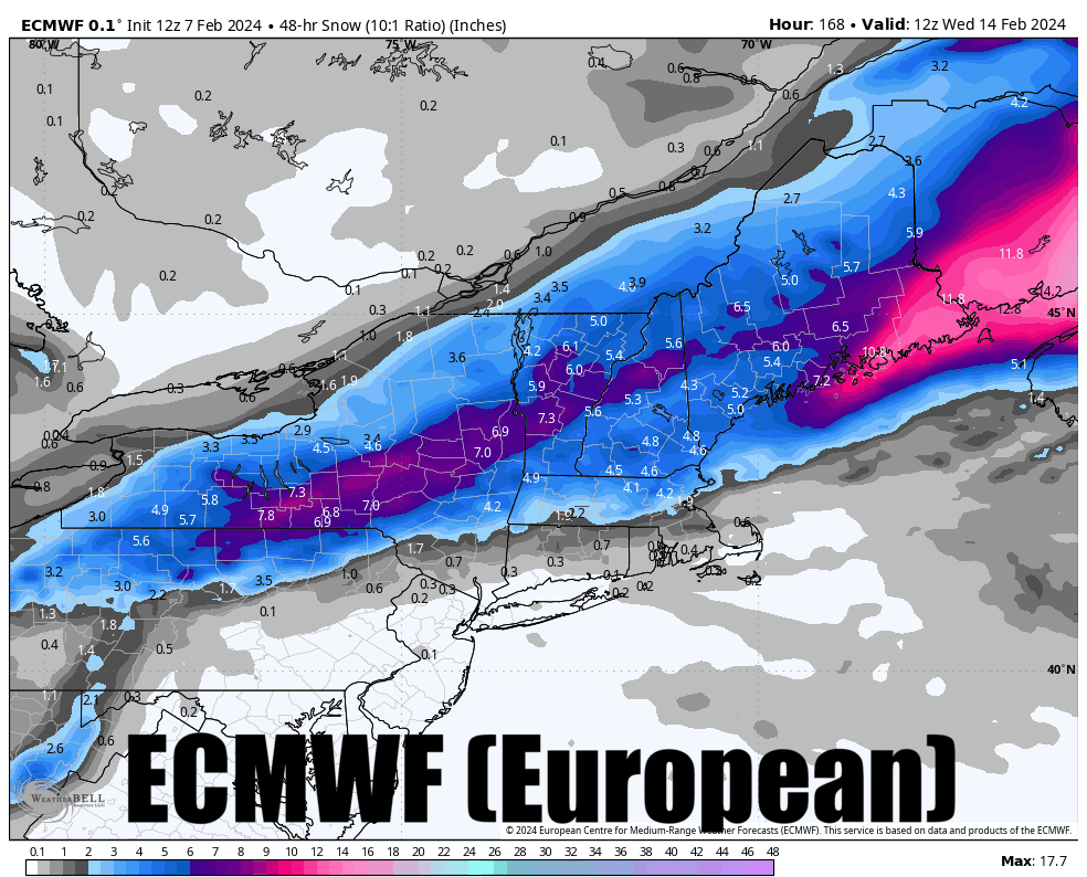 When we are 6 days out we don't attempt to pinpoint forecast, rather we dig deeper into the models, study, and try to determine the moving parts, the differences, the trends, and when we might feel comfortable enough to make a hotel reservation so we can blast some pow. That's what I am going to do below the fold for subscribers at this stage, but I would be remiss not to tease our non-subscribers with some snowfall map porn just to show what might be possible!