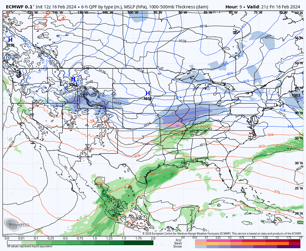 Let's start out with the broad view from the ECMWF covering 4PM Friday through 4PM on Monday.