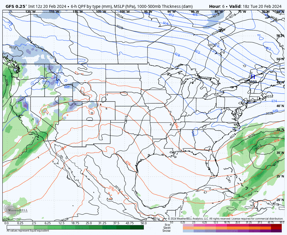 We have a quiet period ahead of us with two storms on their way starting on Thursday/Friday and then again on Monday. Let's take a look at GFS over the next 7 days to set up the coverage.