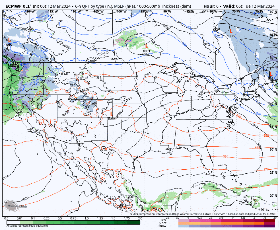 The next 7 days will see two systems, one with marginal temps that will bring both rain and snow, and the other a monster clipper that will usher in the pattern change that we've been talking about for more than 2 weeks which should bring cooler temperatures and hopefully preserve the snow for those who can keep the season going. There is a small chance of that second storm helping to spin up a coastal low, but ensembles presently suggest just a small chance of that. Let's take a look at the next 7 days from the ECMWF.