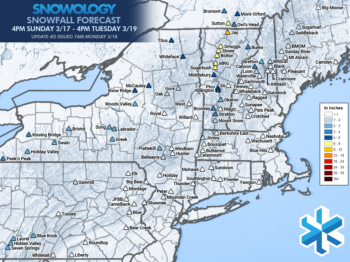 • Mount Snow: 2"