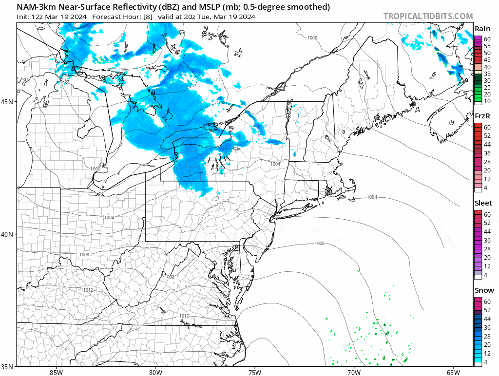 Below is the simulated radar covering this next system from 4PM Tuesday through 4PM on Thursday.