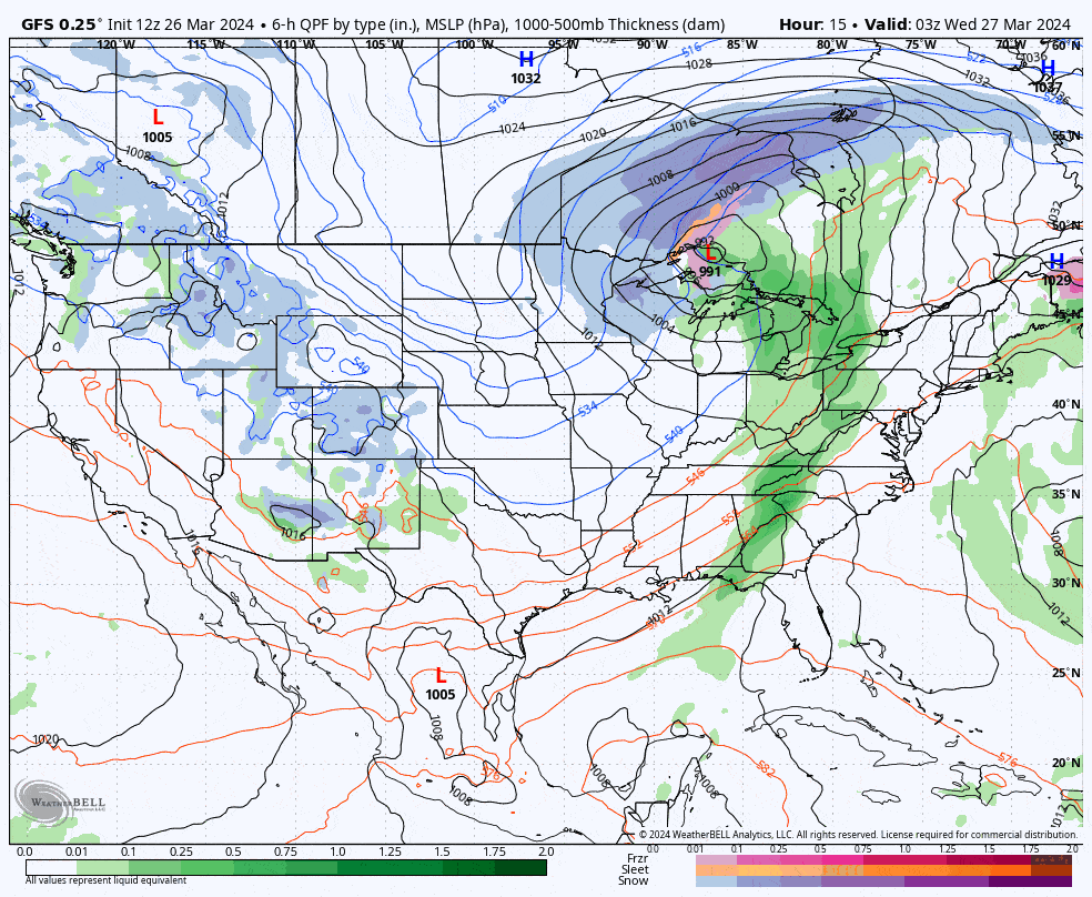 We have just 2 systems of note through Monday, but the first system has impacts at least Tuesday through Thursday, possibly also Friday with a chance of notable amounts of snow in at least part of the region. The next system comes in Sunday though it is not guaranteed and it will likely be light with both a little rain and some snow. Here's a loop from the GFS showing Wednesday through Monday.