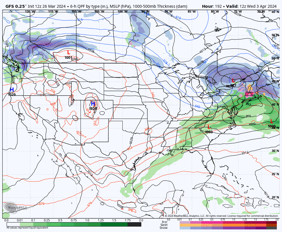 Well, the two week on and off powder party may have come to an end for the time being unless we can get a little lucky on Friday, but all is good because most ski areas that tend to operate into April and beyond have added between 2 and 6 feet of snow this month and at least 14 ski areas made snow in the last week including Blue Mountain, Montage, Holiday Valley, Windham, Greek Peak, Royal Mountain, Catamount, Berkshire East, Wachusett, Stratton, Killington, Loon, Sunday River, and Sugarloaf! We're finishing up strong!
