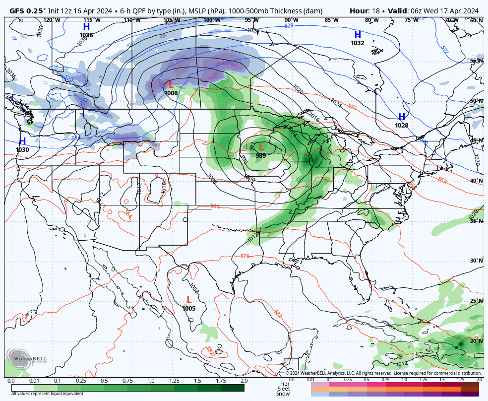 The weather this week isn't super eventful. There will be a little rain, a little bit of snow, a little wind, and we will see some seasonably chilly temps this week to help preserve the snow. Here's the GFS showing 6-hour precipitation intensity from Wednesday through Monday.