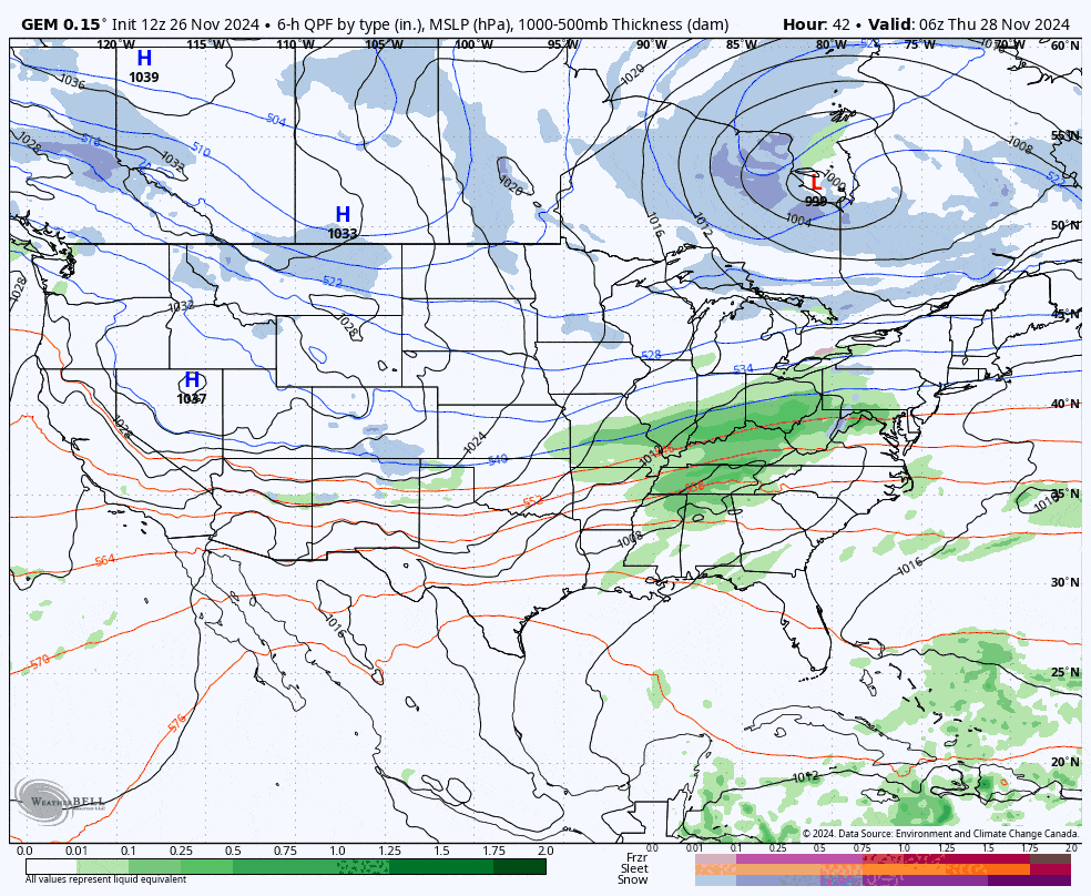 We're now in the "deterministic" phase of forecasting where I begin putting numbers to paper, and I will start off with the Snowfall Forecast and will include a discussion about track and intensity because there is still wide variability that needs to be understood. I will then cover Travel Conditions on Thanksgiving. I'm going to skip covering the back end event this time but it looks to be a very impressive and should last from Friday evening through Wednesday morning before a clipper is likely to break things up. The back end event was covered in Storm Update #1 and there isn't a lot to add right now but in the next update I'm going to give you some tips for what to expect as there could be opportunity for ropes to be dropped at some point next week. As of this moment I'm not concerned with wind issues for the weekend, but there is a small chance on Friday that I'm going to keep checking on.