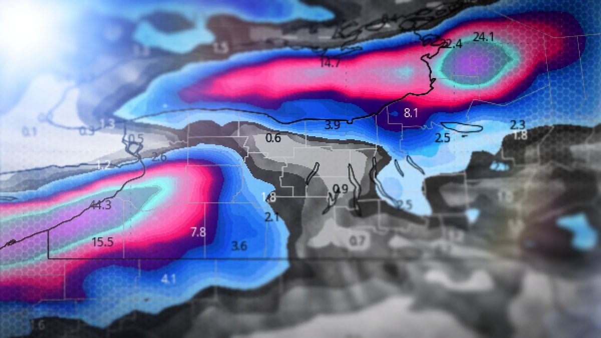 We have an update to our forecast for the back end event that will last through Tuesday with some ski areas in the Great Lakes region expected to receive over 2 feet of snow. There has been a bit of a wind shift from previous modeling that will cause some adjustments, some up, some down. Let's start off with a simulated radar loop covering 7PM on Friday through 7AM on Monday which covers the most prolific part of the back end event.