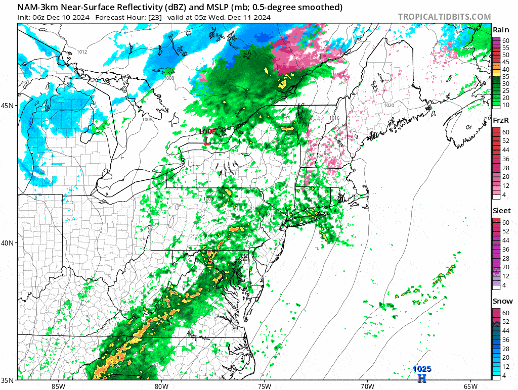 Yeah, this doesn't look good, but we've seen way worse, in fact last December we saw way, way worse with 3 different storms with 2 to 3 times the r@infall. Let's look at how not good it looks to start just to set this up with a simulated radar loop that lasts from Midnight Wednesday morning through 4PM Thursday.