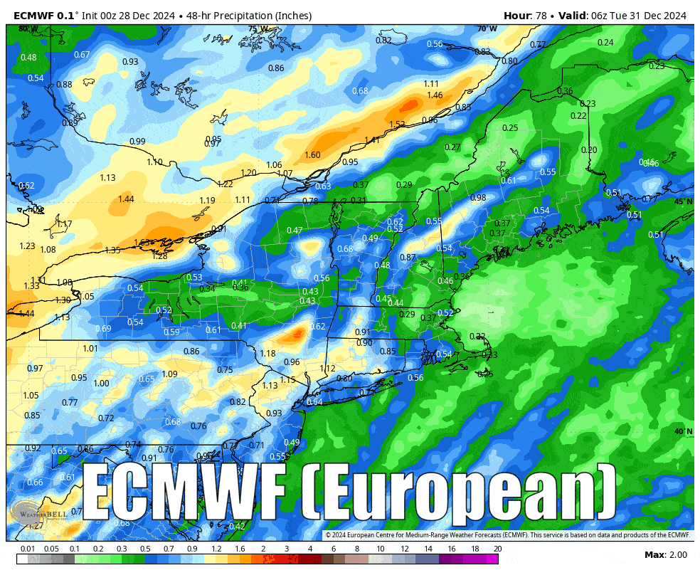 How bad will the damage be? Not that bad in fact. Most of the Northeast's rain will be driven by southerlies and the mountains that get the most from this setup tends to be the taller mountains that are first in line to get hit from the south, basically the same places that get walloped by nor'easters on the front end.