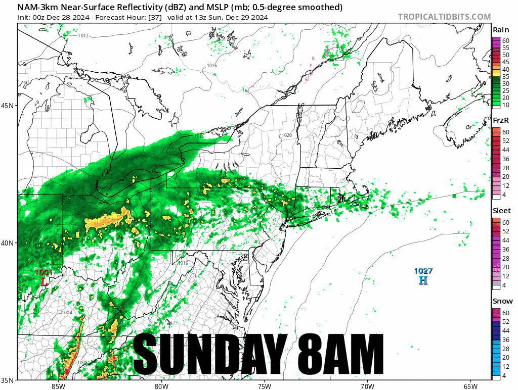 I'm not going to get too fancy when talking about r@!n, and the focus here will be on timing, and the loops are timestamped in order to help with that. Models are in strong agreement but generally you should accuracy within +/-2 hours 24 hours out (Sunday), and +/-3 hours 48 hours out (Monday).