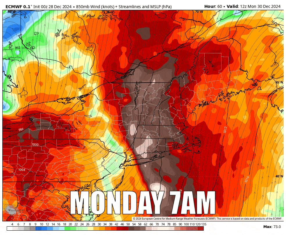 My concerns are exclusively on Monday, though on Sunday we will see some strong winds across PA and the western half of NY, just not to the levels that are likely to threaten lifts.