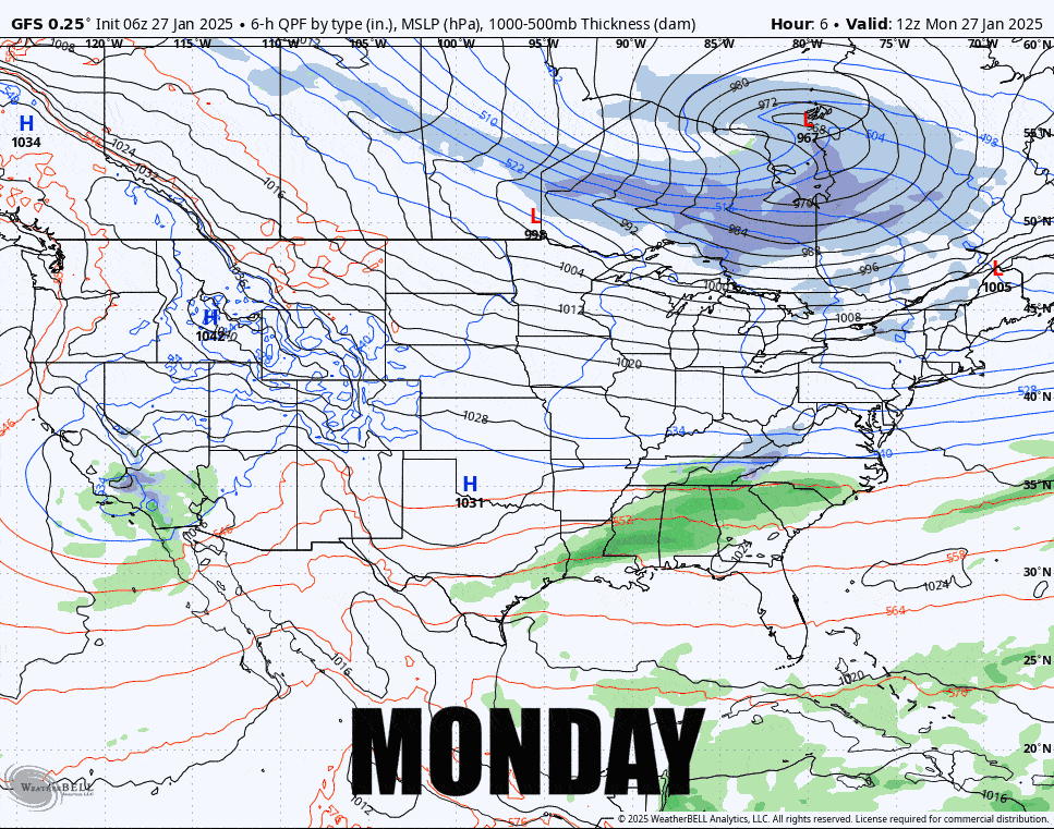 Let me catch my breath (or rest my fingers). That's 5 different systems in 6 days. Here's what thee GFS is presently showing from Monday through Sunday.