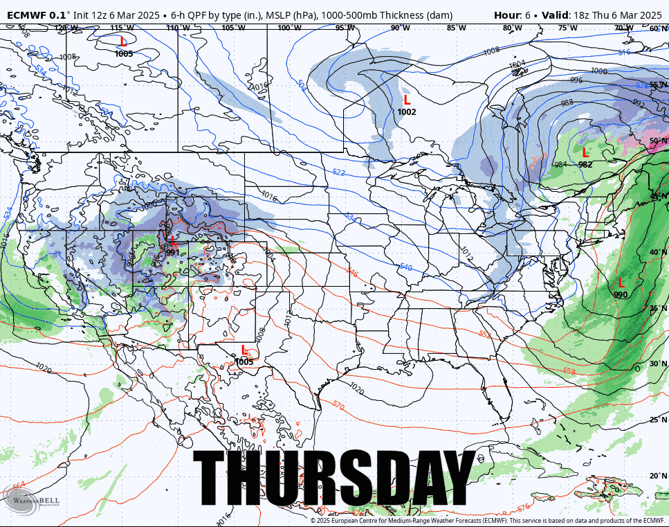 The first full updates tend to be pretty complete and today is really just an update to the forecasts. I am going to start with the Snowfall Forecast and extend it through Saturday at 4PM which is almost all of the snow on the back end of this system. I will then walk through the dailies for each day covering temperature and wind.