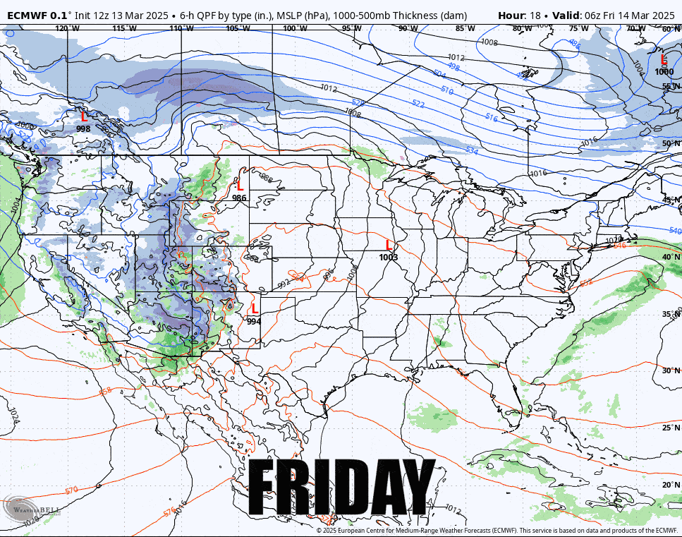 Going into the weekend we do of course have a storm, but the timing of it may save Sunday for many weekenders out there, though even if you dodge the r@!n there will be some strong southerly wind that will cause some issues and you may want to dodge that also. Here's a look at what the next 4 days looks like in the ECMWF right now to get things going.