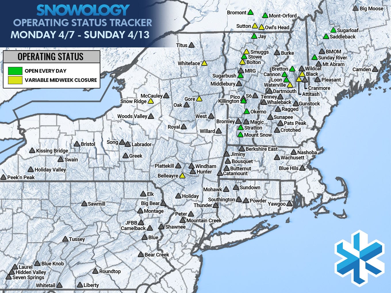 I should note that Holimont in Western New York which is not on the map but located next to Holiday Valley is open through Sunday and tickets are available to the general public. Belleayre and Snow Ridge will be open just Saturday, and I believe everyone else shown in yellow on the map will be open at least Friday through Sunday with the exception of Sutton which is only open Saturday and Sunday only. Still plenty of great choices and this will be a fantastic weekend pretty much everywhere.