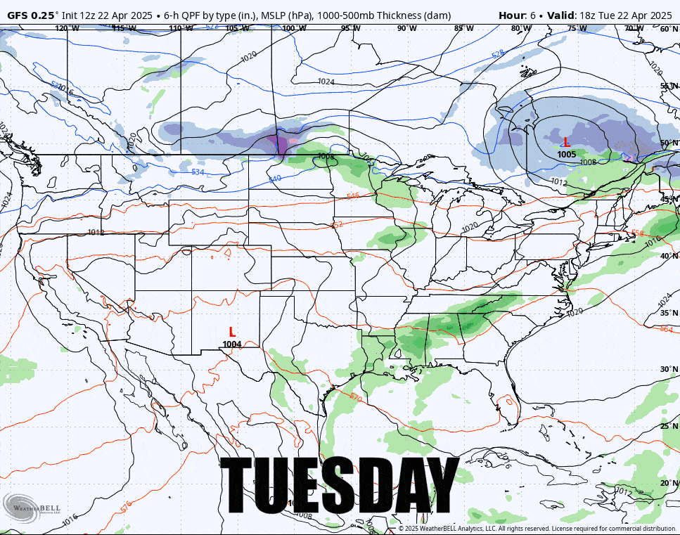 We're going to build that corn up nice and deep this week after bouncing back and forth from spring to winter and having some washouts and refreezes, many of which have been ill-timed for the weekenders. When corn first starts to build, r@!n and warm temps can melt it out on snowmaking terrain, and of course the natural snowpack is less substantial though it is still holding up north. This week through Friday is the best time to hit the corn, but it looks like Saturday is going to be another washout I'm afraid. Here's the broad view from the GFS: