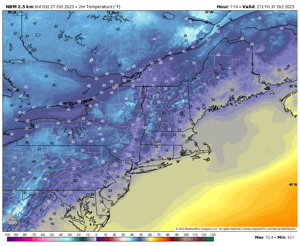 This storm is going to pull cold air behind it, so after the r@!n here's what the temps look like at 5PM on Halloween: