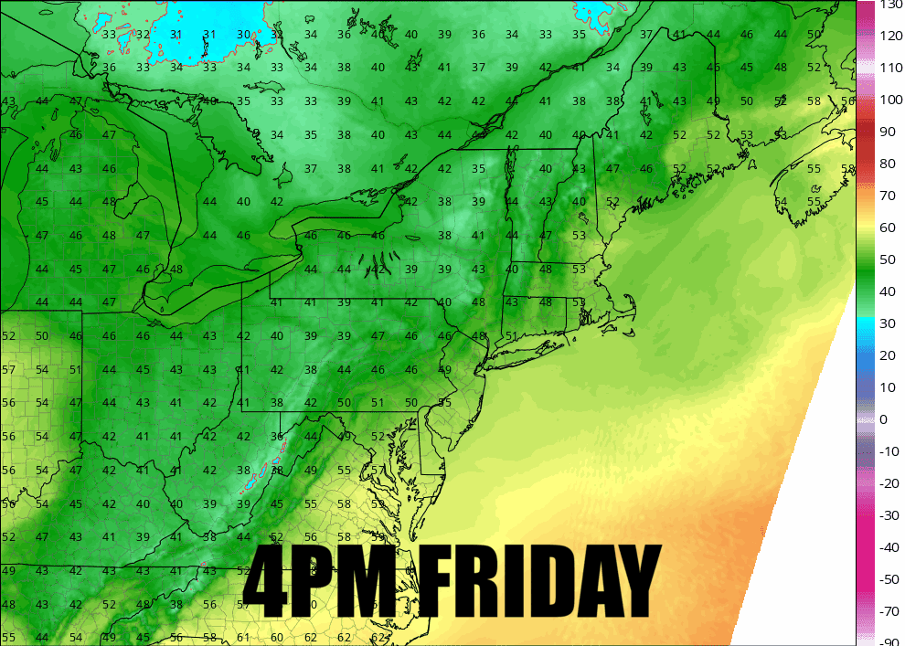 That chill is going to be exasperated by the wind unfortunately, and it's going to get quite spicy in parts of PA, NY, and Southern New England especially.