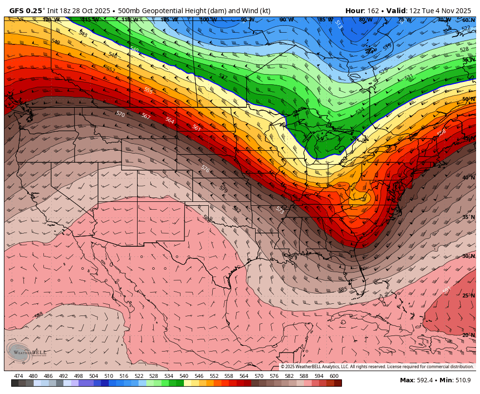 The morning of Friday November 7th we might see some snowguns start to light up but it won't be very productive as we will be barely in the cold based on current modeling. We really needed that storm to pull a trough and cold air further south.