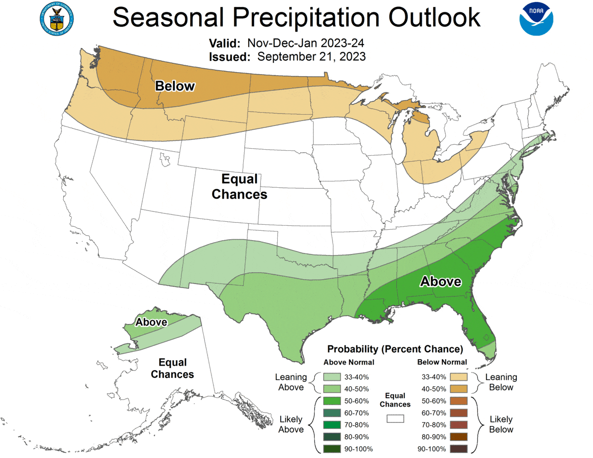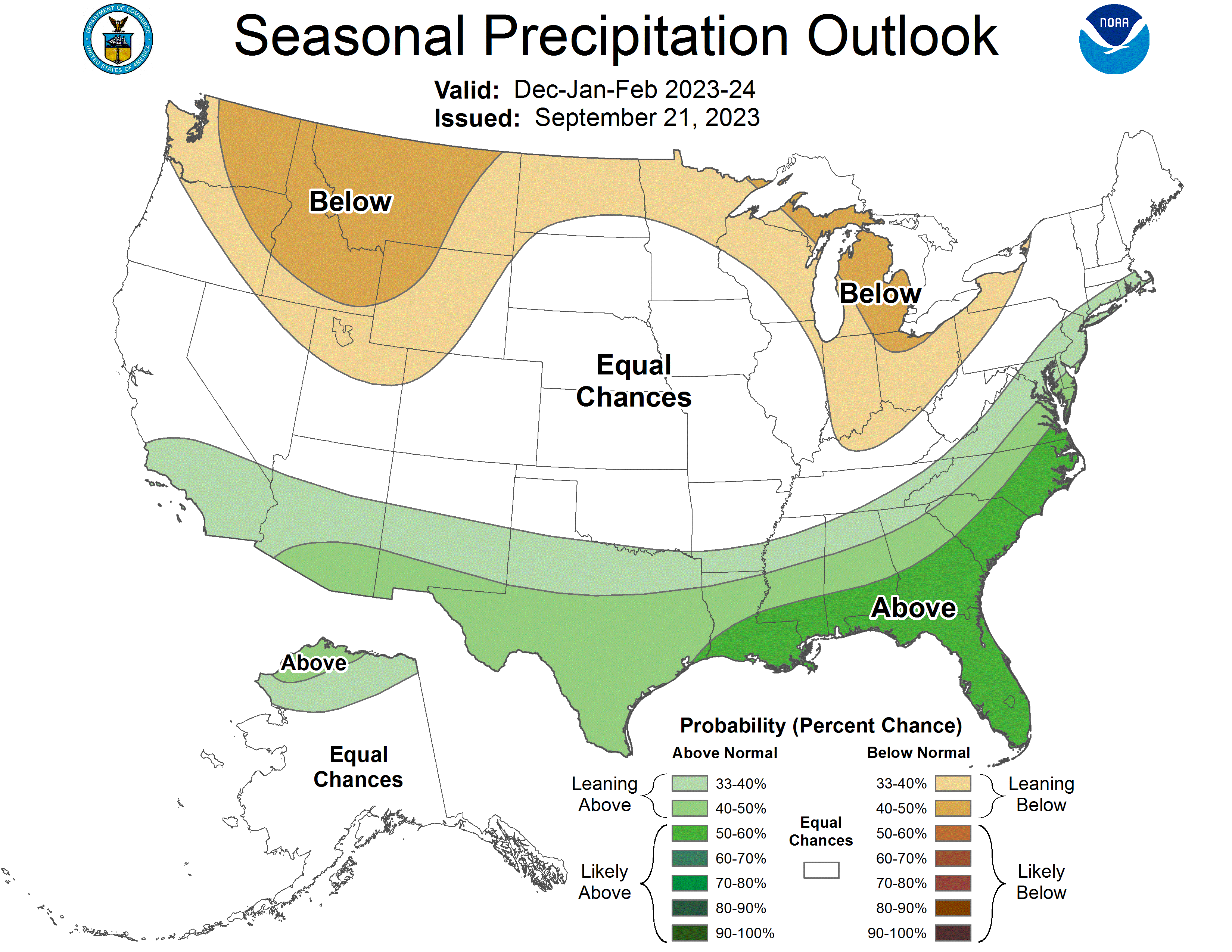 The CPC's most recent winter outlook issued on 9/21/2023.