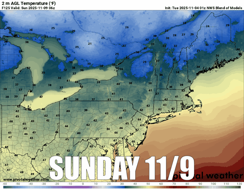 The latest GFS did temper the cold a bit from earlier runs, likely due to a weaker and less organized storm which is still an open question, but this flatter presentation is still deep enough and long enough lasting for snowmakers across many parts of the Northeast to get some serious hours in under the guns. Here are the temps every 6 hours from Sunday through Thursday next week according to the National Blend of Models.