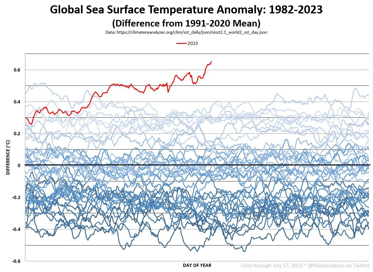 With ocean temperatures all over the globe reaching records, and in many cases smashing through older limits while sea ice is experiencing record lows in many parts, some meteorologists are expressing alarm about a possible Super El Nino with global effects. This is in fact scary to see.