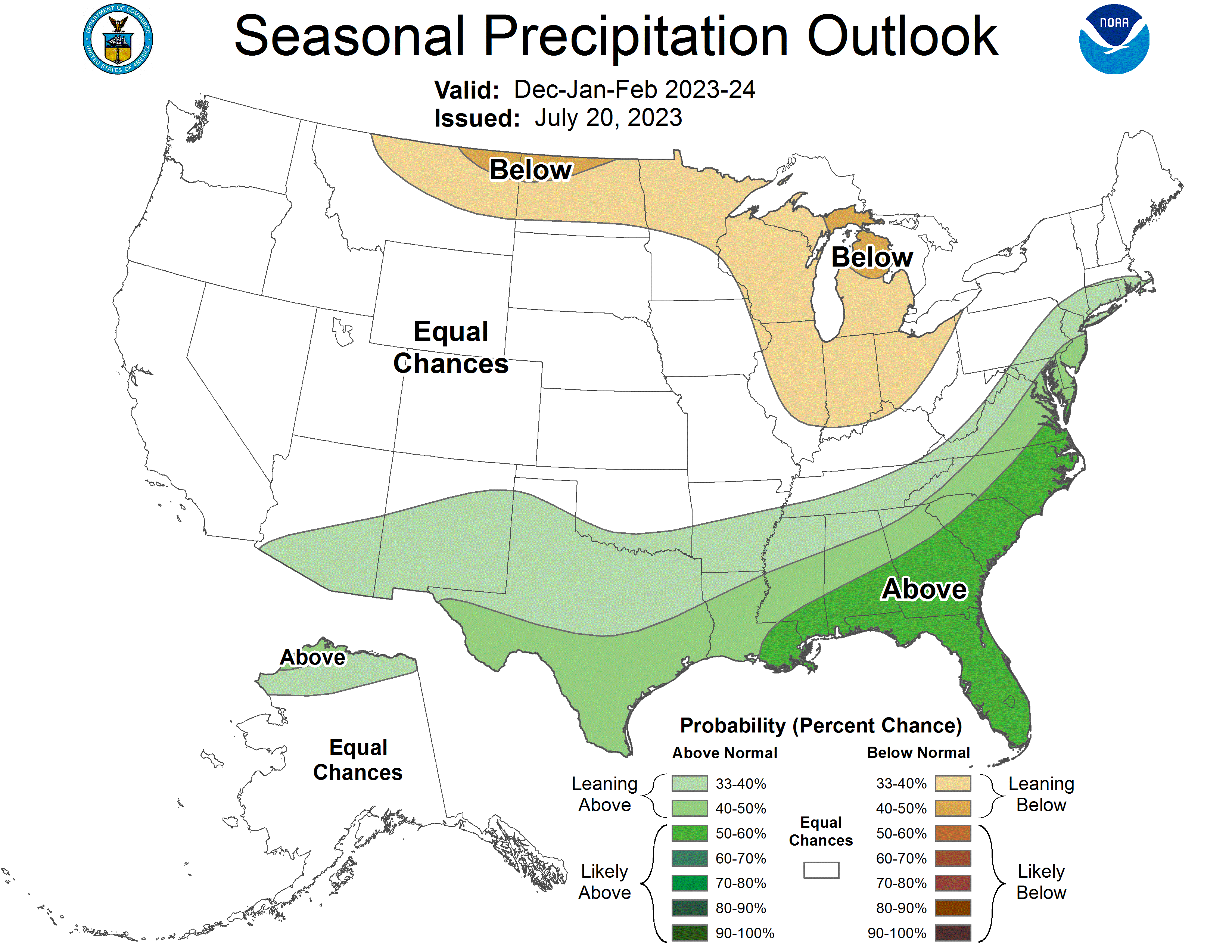 NOAA's Climate Prediction Center issues outlooks up to 12 months in advance, and they tend to rely on these large scale weather patterns and analogs built from the average across many years with similar influences. It's not a surprise that they are predicting temperatures and precipitation next winter that reflect the standard El Nino pattern, and their outlook is unlikely to change much as we get closer. That doesn't of course mean these will confirm, in fact they are only predicting approximately a 50% chance of above average temperatures in the Northeast and that is the responsible way to express the certainty of this pattern in various parts of the country.