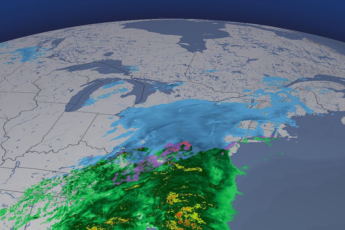 The storm is already widespread in much of Pennsylvania and New York with some bands stretching all the way to Maine, and it will exit the Northeast in about 24 more hours.
