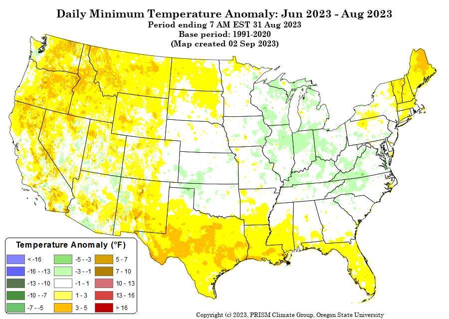 The heat from the Sun comes at us in different wavelengths than the heat released back from the water and ground. Greenhouse gases such as CO2 and CH4 (methane) do not capture the wavelengths that reach the Earth from the Sun, but the heat that is absorbed by water and land during the daytime is then released at night in the infrared spectrum and greenhouse gases absorb that heat nearer the surface and reflect some of it back. Less heat escapes the lower regions of the atmosphere as concentrations of those gasses increase. Our highs this summer were actually fairly cool, but our nights overall, especially in New England, were warmer than average. That is to be expected unfortunately.