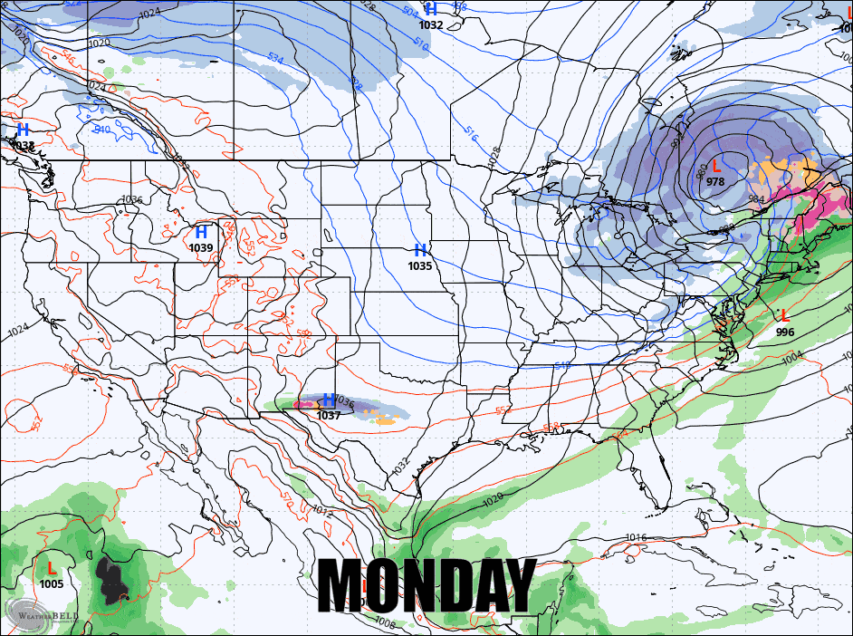 We do have a substantial back end event in front of us, most of it occurring between today and Thursday morning. I'm forecasting up to 3 feet in fact in some locations. We'll have widespread wind issues on Tuesday and of course a refreeze that will leave everyone a bit crumbly and steeper trails will get skied off easily except for W-NY where that should all get buried so you need to be careful about your plans on Tuesday for sure. We also have some chilly temps in front of us, especially in the northern half of the Northeast through Wednesday will give us a slight break but those cold temps will return and are expected to last through the weekend.