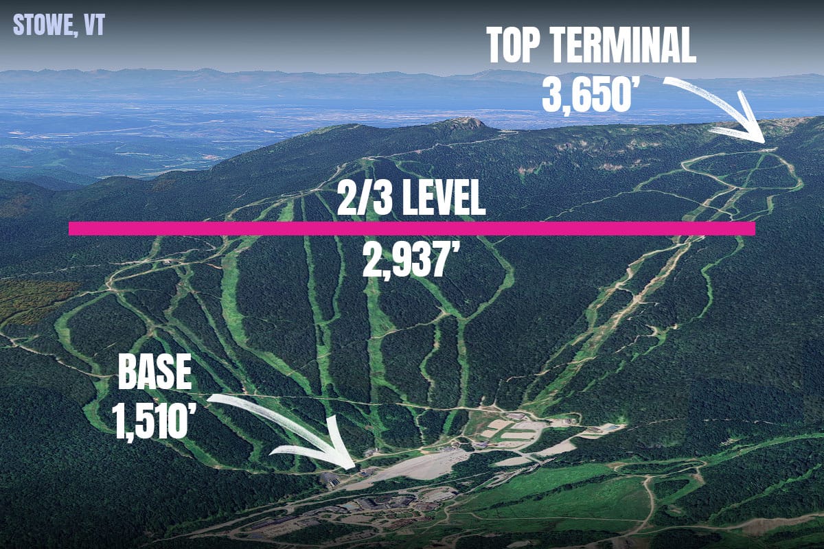 Our precipitation forecasting method is to target the 2/3 level of each ski area, measured from the main base to the highest lift terminal. This is essentially the 'Colorado Standard', and we're adopting it for the East (and we believe all ski areas should do the same). Snow does vary across mountains even at the same elevation, but our goal is to estimate the average amount of snow seen across this entire level of the mountain.