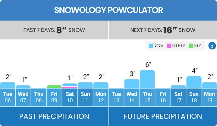 Diving into the most important part of our system, this is front and center in the ski area weather view showing a combination of past snow and future snow.