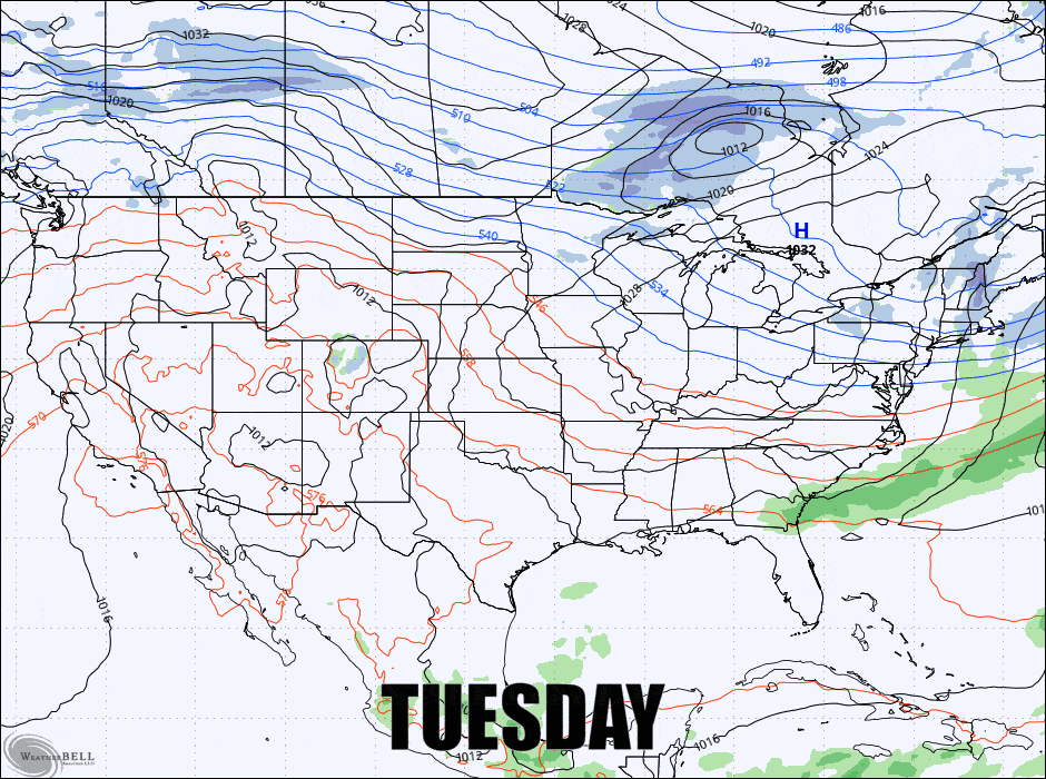 We'll stay in northwest flow until Thursday when the first of two waves comes through the Northeast which will flatten out the flow. Thursday shows some possibilities in the far northern reaches of the Northeast but at this time Friday does not, though that could change for better or for worse on both days. Behind those storms we'll drop back into northwest flow again and a large trough should dominate during the weekend bringing a refreeze to the wetted areas with limited daytime melting on Saturday and Sunday. Here's what the GFS currently shows through Sunday.