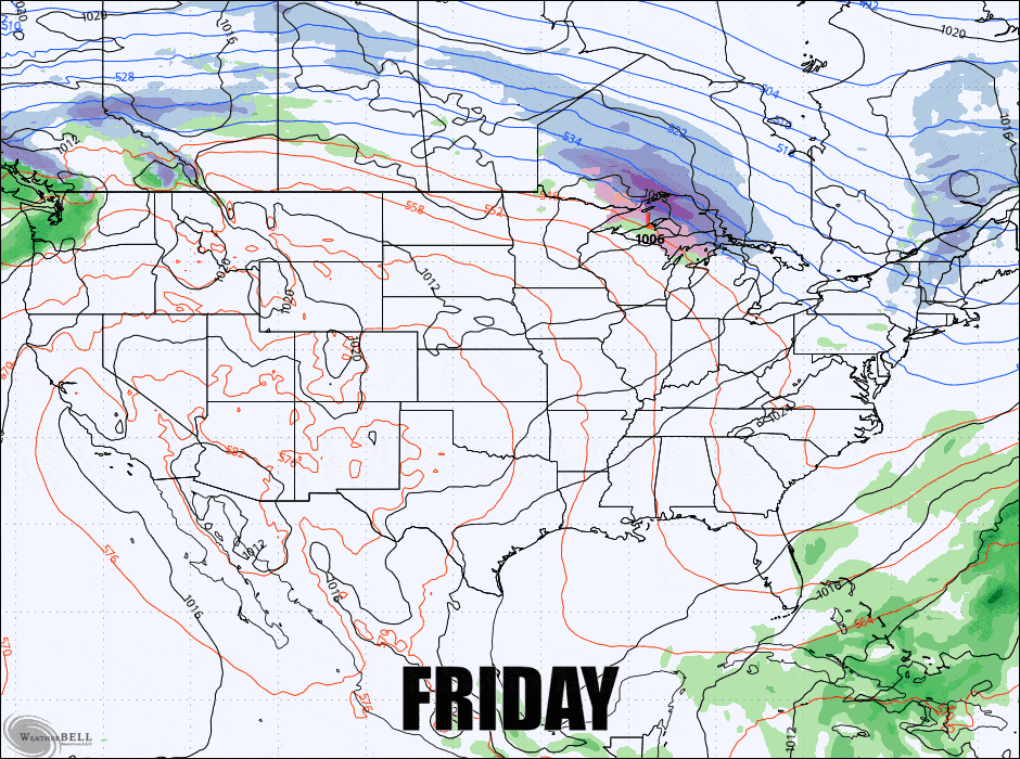 March is typically a tricky month with periods warmth, r@!n, and cold making the conditions vary widely by day, but we can also get some snow and in fact that's really the biggest story for this weekend is two sliders, one coming through starting Friday afternoon, and then another starting Sunday morning. Let's look at the broad view from the latest GFS showing these two systems from Friday through Sunday.