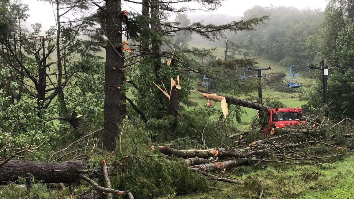 Snow Ridge in Turin, NY was hit by a remarkably strong tornado for this area of the country on Monday that impacted three of their lifts, threw warming huts and lift shacks around, and snapped trees off at their base. When you see mature trees snapped near their bases then you know you had a strong storm. The NWS did an analysis and found that winds up to 140 mph were experienced along a 16 mile path. That's EF3 intensity, and that's generally about as strong as they get in New York.